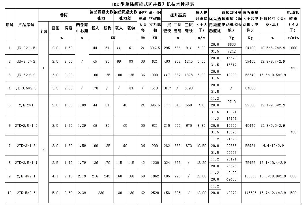 JK型單繩纏繞式礦井提升機(jī)的供應(yīng)范圍: